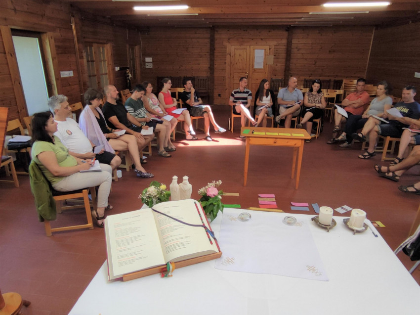 Nagy öröm volt megtapasztalni a közös munka erejét és látni, milyen gazdag lelki kincsek fakadnak egy-egy nehézségben megélt, Isten felé fordult élethelyzetben. Esténként közös küldetésünkre való felkészülést segítő beszélgetésekre volt lehetőség. Próbáltuk meghallani, mire hív bennünket a Jóisten, hol tudjuk a megszerzett tudást és kapott talentumainkat jól használni. Közös feladatunk az evangelizáció és a közösségépítés irányába körvonalazódik. A hét zárónapján összegeztük a kétéves képzés élményeit, az előadásra készülés és az előadói tapasztalatainkat. A záró szentmisét Bíró László püspök mutatta be. Minden házaspárnak volt alkalma bemutatkozni és szimbolikusan átadni a személyes imaszándékokkal, hálaadásokkal teli borítékokat.
