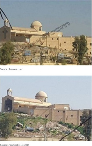 A Szent György (Mar Kurkis)-kolostor a rombolás előtt és után