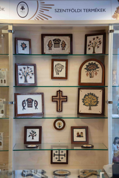 A vitrinbe szentföldi mozaikok, olajfából készült szappanok és keresztény családok által készített rózsafüzérek kerültek, melyek októbertől bárki számára elérhetővé válnak, akik szeretnének segíteni a nehéz sorsú menekült családokon.