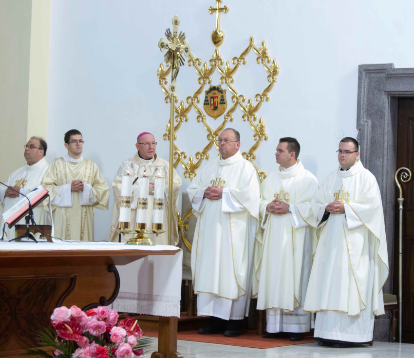 A megyéspüspök ezután a templom három részéről beszélt, amelyek szimbolikusan is vezetik az embert az Istennel való találkozásra: amikor belépünk a templomba, egyfajta megtisztulási folyamaton kell átmennünk – erre utal a jelképes cselekedet, amikor szenteltvízzel keresztet vetünk; a templomhajó azt jelképezi, hogy egy közös bárkában utazunk, egy Egyházhoz tartozunk, ahol Jézus a kapitány, ő vezet és tanít bennünket, hogy értelmünk egyre jobban megvilágosodjék, és egyre inkább megértsük a tanítását, ami igazi örömhír; a szentély pedig az egyesülés helye, ahol a szentmisében egyesülünk Istennel, amikor magunkhoz vesszük Jézus Krisztus Szent Testét, az Eucharisztiát.