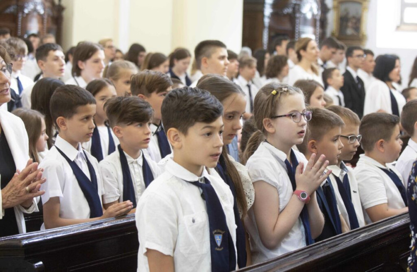 Bódis Zoltán köszönetet mondott Papp László iskolalelkésznek is, aki idén egy új kezdeményezést indított el az intézményben: egyházzenei szakmai napot tartottak a gödöllői Premontrei Gimnázium tanárai, diákjai részvételével Balogh Piusz apát vezetésével. Az akkori találkozó legelső gyümölcse az iskola himnuszának megszületése, amelynek szövegét Piusz atya írta. A himnusz ősbemutatóját az iskola énekkara előadásában hallgatták meg a jelenlévők.