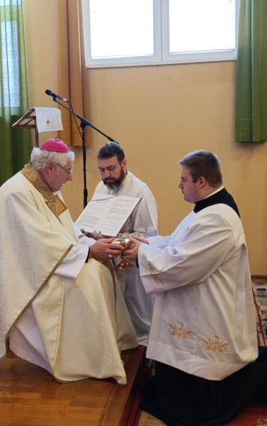 A prédikációt követően Gubena Ábel és Huszár Ádám negyedéves papnövendékek akolitussá avatása következett.