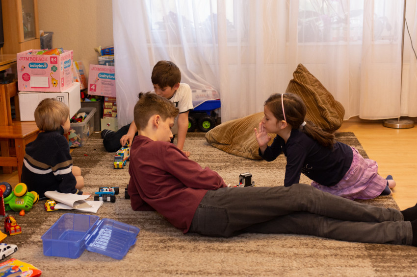 T. F.: Nagyon lényeges a logisztika: reggel közösen készítjük össze a gyerekeket, én viszek mindenkit óvodába, iskolába, Hajni marad otthon a kicsivel. És ott van még az építkezés is... Előfordul, hogy valamelyik kamasznak lelki gondjai vannak. Ilyenkor időt kell szánnunk arra, hogy leüljünk vele és meghallgassuk. Ráadásul jó lenne, ha csak őrá tudnánk figyelni, nem pedig arra, hogy az egyiket pelenkázni kell, a másik vizet kér, a harmadik játszani szeretne. Nagyon érdekes dolgok derülnek ki ilyen alkalmakkor. A tizenkét éves, kamaszodó nagylányunk például időnként piszkálta a kisebb testvérét, bezárkózott, duzzogott… Mi lehet emögött? Amikor megnyílt, kiderült, hogy az egyházi iskolai közösségben nehéz megélnie a mi „másságunkat”, azt, hogy sok testvére van, és azt is, hogy keresztény.