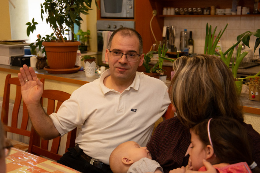 T. F.: Ami a kérdésében említett fontossági sorrendet illeti, mi máshogyan gondolkodtunk erről. Meg sem fordult a fejünkben, hogy a gyerekek érkezése előtt mindenképpen egzisztenciát kellene teremtenünk. Hittünk abban, amit Hajni is mondott, hogyha vállaljuk a gyerekeket, Isten biztosan megadja azt is, ami a felnevelésükhöz szükséges. Így is történt. Mindig akkor kaptuk meg a Jóistentől, amire szükségünk volt, amikor igent mondtunk egy újabb babára. Amikor a huszonnyolc négyzetméteres albérletben laktunk, és a második gyermekünket vártuk, egyszer csak adódott egy olyan munka, melynek révén egy ötvenkilenc négyzetméteres új lakásba költözhettünk. Az évek múlásával hat főre gyarapodott a családunk. Az ötödik baba érkezésekor költöztünk a jelenlegi otthonunkba. Ahogy tovább nőtt a létszám, és a gyerekek egyre idősebbek lettek – a nagyobbak most kamaszodnak –, ezt a családi házat is szűkösnek éreztük. Úgy gondoltuk, nagyobb élettérre lenne szükségünk, így belefogtunk a ház bővítésébe. Érdekes, amit az egyik szerzetes barátom mondott: két fiatal összeházasodik, vállalják a gyerekeket, és ahelyett, hogy csődbe mennének, egyre csak gyarapodnak. Mi ezt tapasztaljuk az életünkben. Persze ez nem jelenti azt, hogy nincsenek nehézségeink, de mindig érezzük a Jóisten áldását.