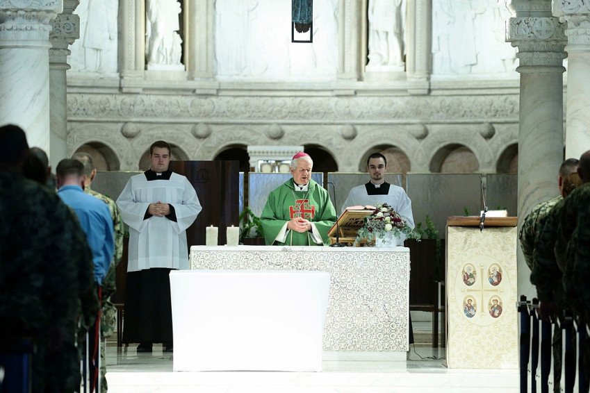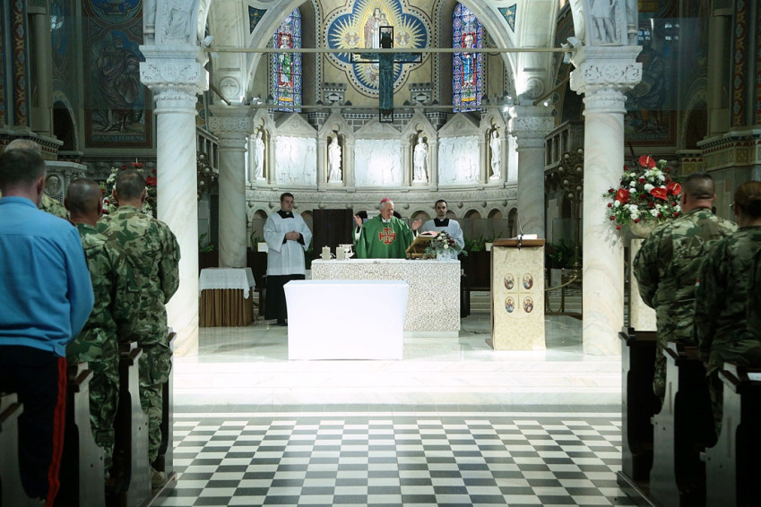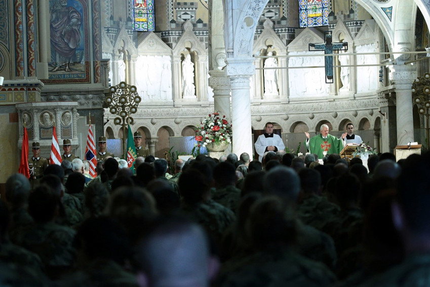 Prédikációjában arról beszélt, hogy az élet során szellemi fegyverekre van szükség, az üdvösség sisakjára, a hit kardjára és a megigazulás páncéljára annak érdekében, hogy túléljünk, fejlődjünk és egészségesek legyünk lélekben. Megjegyezte: annak érdekében, hogy az igazságot, az értékeinket, a hazánkat meg tudjuk védeni, nemcsak szellemi fegyverekre van szükség, hanem küzdeni és harcolni kell azért. Emlékeztetett, hogy a római hadseregben tilos volt kereszténynek lenni; csak 312-ben, a Milvius-hídi csata előtt járult hozzá Nagy Konstantin római császár ahhoz, hogy akik eddig titokban viselték a keresztet, azok zászlóra tűzhessék, jelvényként viselhessék. Hozzátette, a kereszt jegyében győzött és szabadult fel a kereszténység.