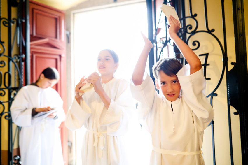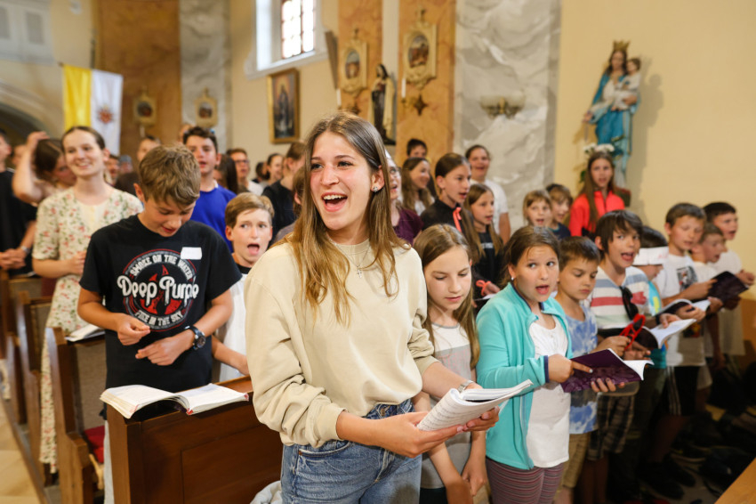 A szentmisén elénekelik Szent Ignác felajánló imáját, a szentáldozás végén pedig olyan hangerővel zengik a dicsőítő éneket, hogy majd szétrepednek a templom falai. Ugyanilyen lelkesek a szentmise végén is, amikor a „Bízz benne, veled az Úr” refrénnél igazi koncerthangulat alakul ki tapssal, énekléssel, mozgással – csakhogy mindezzel Jézust ünneplik.