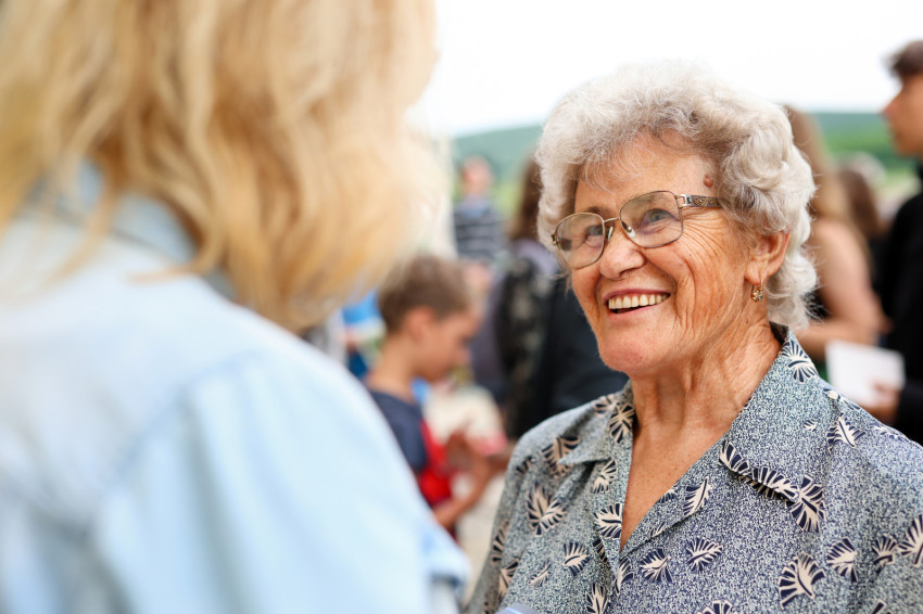 Miközben a ministránsok kiosztják a gyerekeknek a berkenyeiek ajándékát, egy képeslapot a faluról, a helyiek pedig egy jezsuita imakártyát kapnak, Nusi néni, az egyik szállásadó szívesen mesél nekem arról, mekkora élmény számára gyerekeket befogadni. „Tavaly a lányom Szendehelyen fogadott be táborozókat, ő ajánlott engem a szállás megszervezésére. Hatvan gyereknek szereztem szállást. Tele van a szívem a gyerekekkel. Nálam két kislány lakik most. Napközben nincsenek otthon, reggel hétkor én ébresztem őket, este pedig együtt vacsorázunk. Tizenegy unokám van és kilenc dédunokám. Mondtam is a lányoknak, fogadjanak engem úgy, mint egy nagymamát.