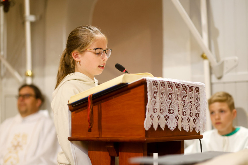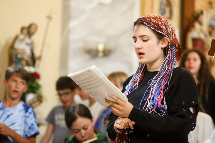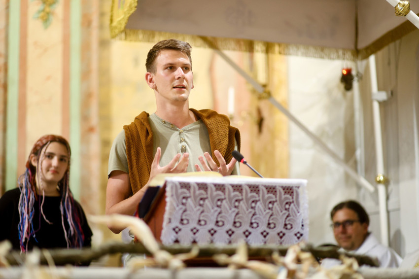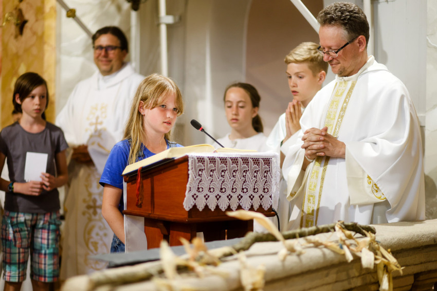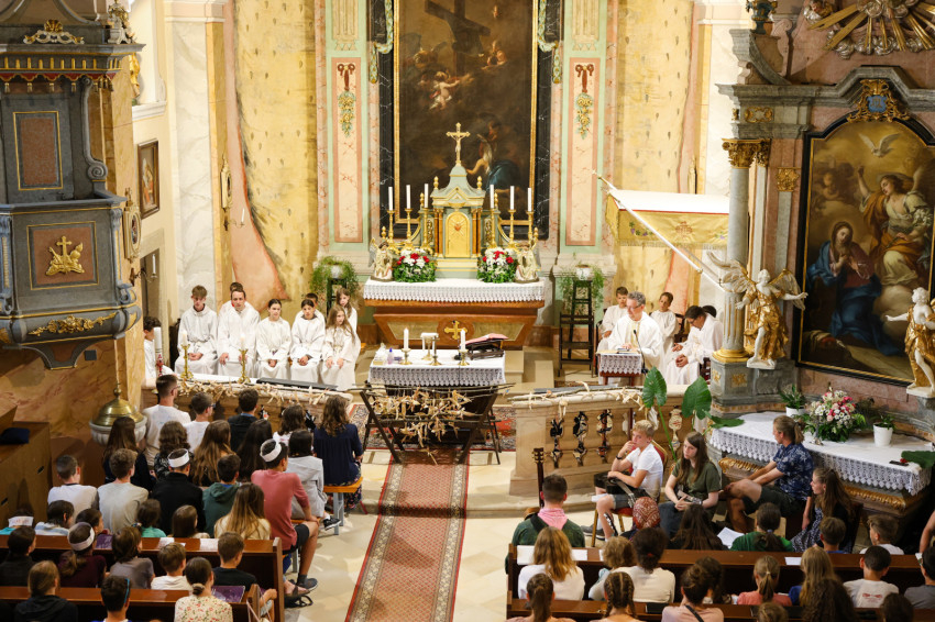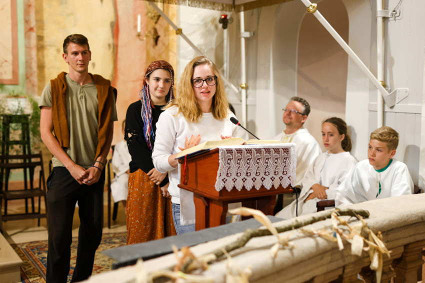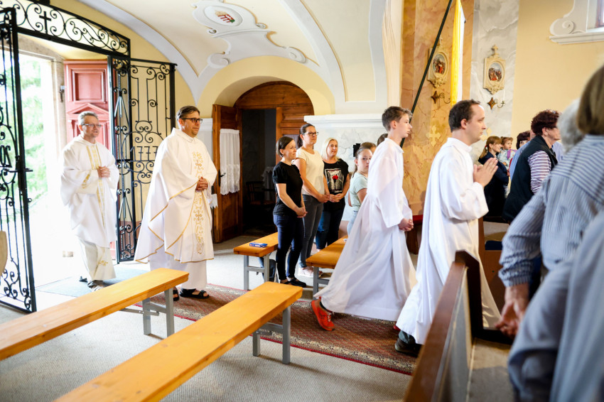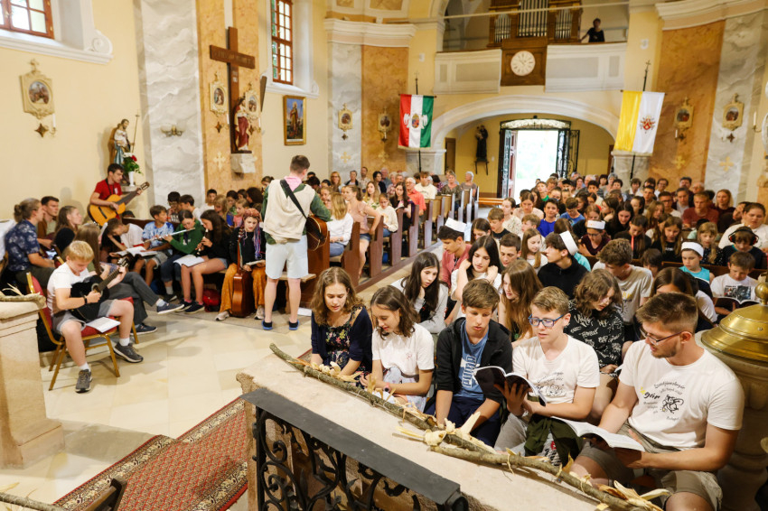 – folytatja Zoltán atya. – Szép ebben a kezdeményezésben, ahogy együttműködünk a helyiekkel. Minden táborunk programjának része, hogy megnézzük az ottani nevezetességeket. Itt most elvittek minket a falumúzeumba, a babamúzeumba, bemutatót tartott egy vadász, és azt is megtanították nekünk, hogyan lehet kukoricahéjból csuhébabát készíteni. A falubeliek megmutathatják a kincseiket, a sajátosságaikat, és számukra is hasznos az ittlétünk: a gyerekeik velünk táboroznak, megismerkednek a vendég gyerekekkel, és a misék, amikor tele van a templom fiatalokkal, nekik is lelki felfrissülést nyújtanak.”