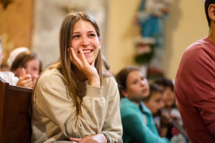 Nagy-Kapás Rita éppen a templom kertjében van az Agárkosbor nevű tízfős kamaszcsoportjával, hiszen nemsokára kezdődik a missziós mise. „Én 2006-ban kezdtem »bogarazni« a hittantanárom javaslatára. A ciszterci gimnáziumba jártam Székesfehérváron. Édesanyámnak megtetszett a tábor neve, így kerültem ide – mondja Rita. – Csoportvezető 2016-tól vagyok, elvégeztem a vezetőképzőt, és most hat vezetőt mentorálok. 2006 óta minden táborra emlékszem, ez a közösség jelenti a baráti közegemet, itt találkoztam a férjemmel. Engem a Szentjánosbogár tart meg.”