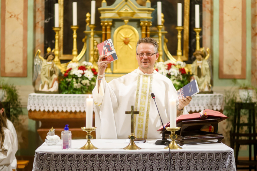 Koronkai Zoltán és a helyi plébános, Laczkó Mihály vidám énekszóra vonulnak be. Zoltán atya köszöntőjében elmondja: „Gyönyörű helyen vagyunk, de az emberek szíve még szebb: még soha nem sikerült ilyen gyorsan megszervezni a szállást.” Megköszöni a helyieknek a sok programot, amit a táborozóknak szerveztek, és azt is, hogy otthon érezhetik magukat közöttük.