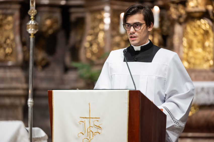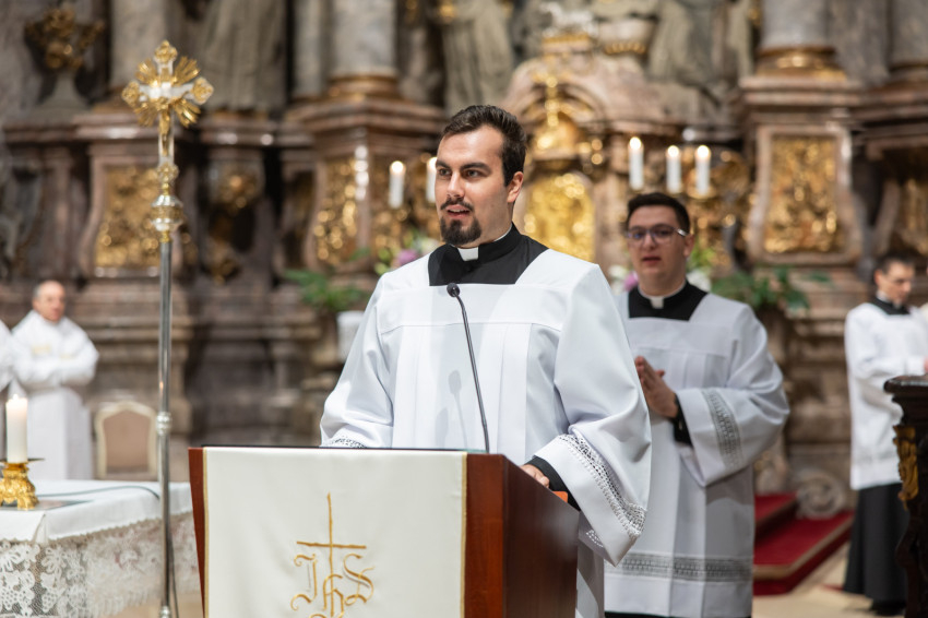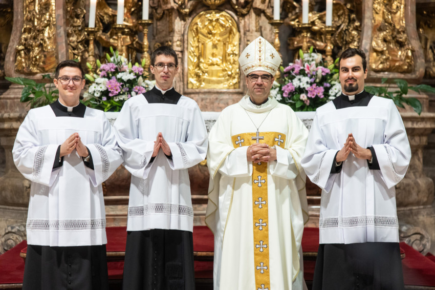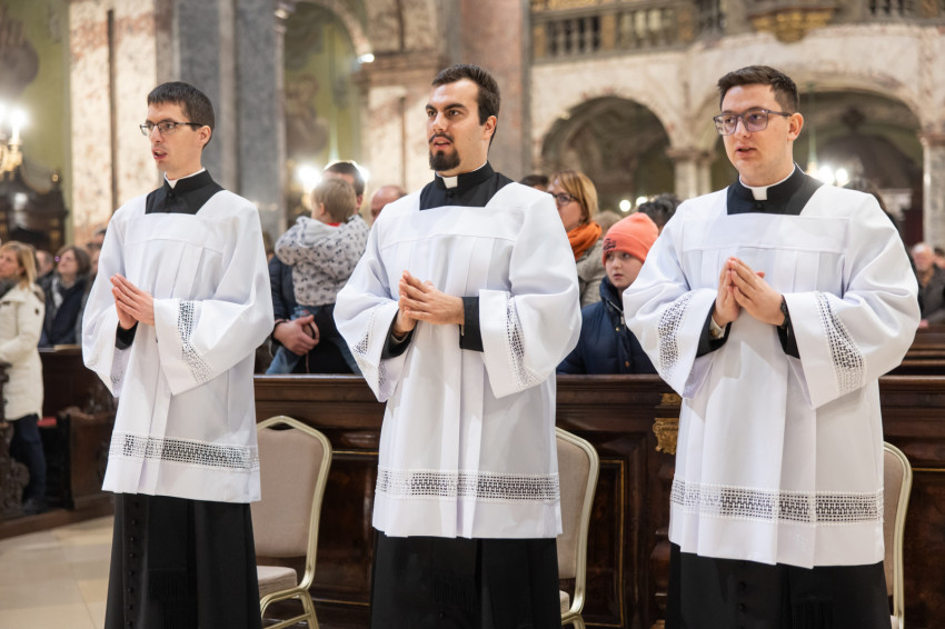 A mai napon valami hasonló történik. A három papnövendék éveken át készül a hivatására, most pedig odalép hozzájuk a Jóisten, és megérinti a lelküket, az élet igéjének hirdetőjévé, az élet kenyerének kiosztójává téve őket.