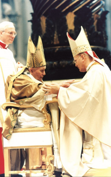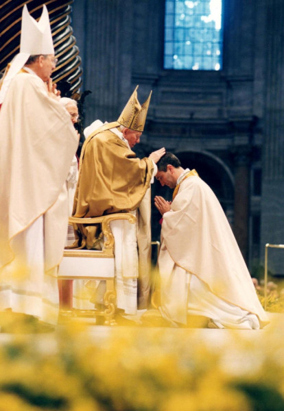 Itt, Rómában, ezt a misztériumot azzal a szokással ünnepeljük, amelyhez pápaságom kezdetétől hű akartam maradni, hogy új püspököket szentelünk. E hagyománynak magától értődő teológiai és lelkipásztori ékesszólása van, és ma örömmel bevezetjük a harmadik évezredbe.