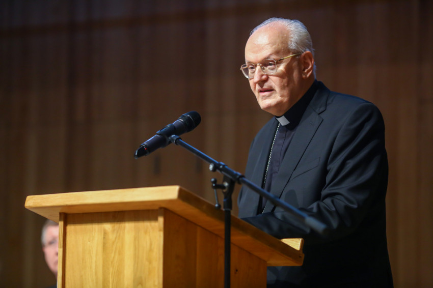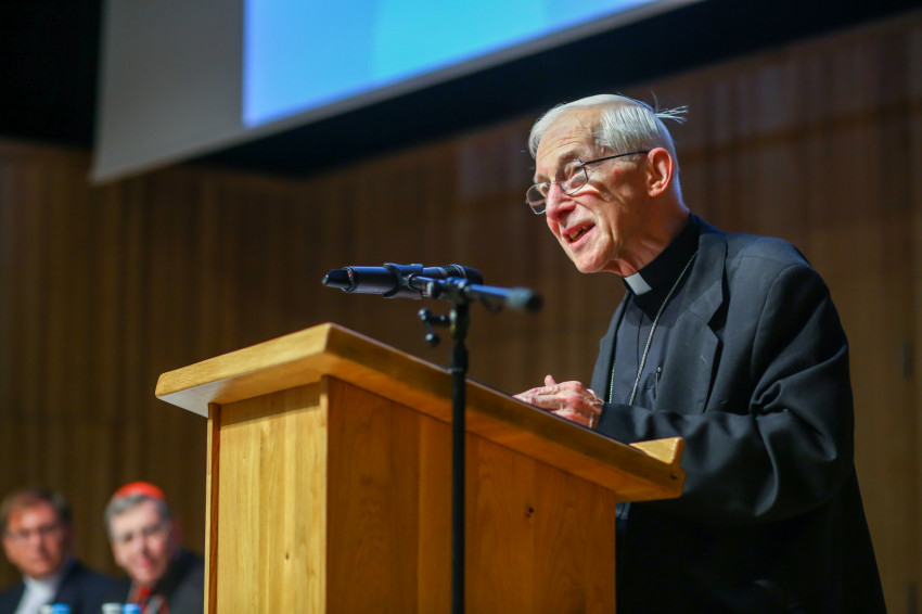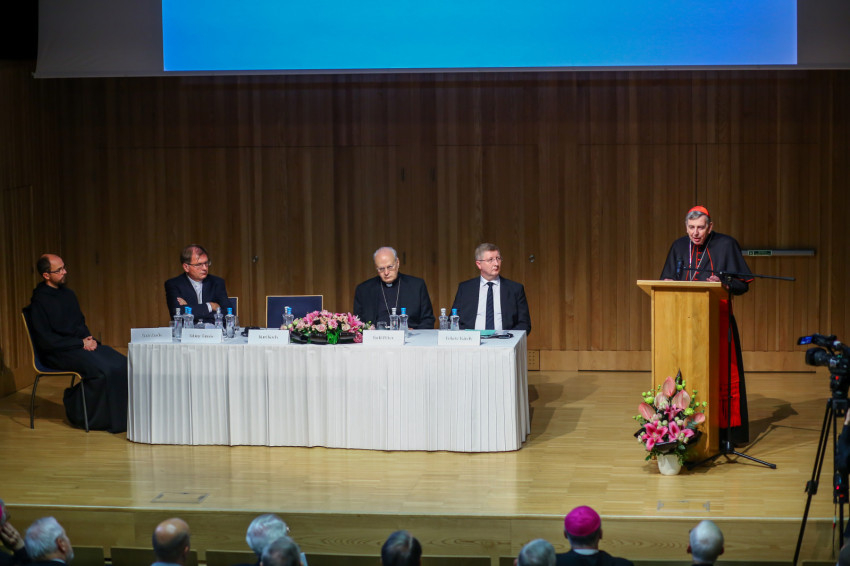 Michael August Blume SVD apostoli nuncius köszöntőbeszédét követően Kurt Koch bíboros, a Keresztény Egység Előmozdítása Pápai Tanácsának elnöke Hogyan viszonyul a világhoz a keresztény hit? – Megfontolások az ökumené szemszögéből címmel tartott előadást.