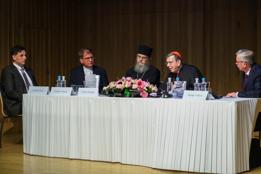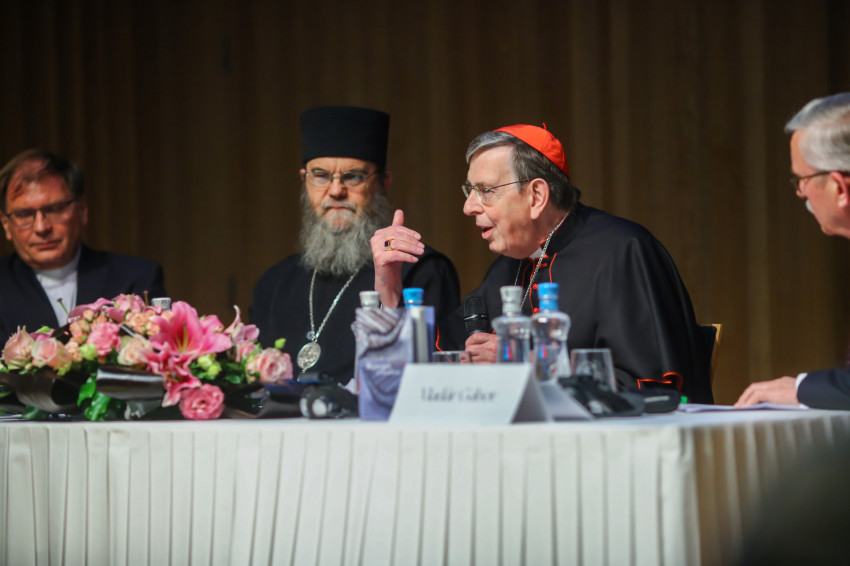 Ezt követően kerekasztal-beszélgetésre került sor Kurt Koch bíboros, Orosz Atanáz püspök, Fabiny Tamás püspök és Vladár Gábor lelkipásztor részvételével. A diskurzust Görföl Tibor, a Vigilia folyóirat főszerkesztője, egyetemi docens vezette.