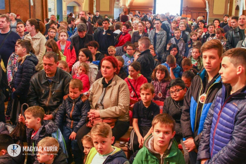 Megtelt a kegytemplom a Szent Liturgiára, amire készülve a résztvevők elénekelték a gyermekbúcsú indulóját. A szertartáson Béres Gábor, a Miskolci Görögkatolikus Általános Iskola lelkésze – szem előtt tartva a találkozó központi témáját és mottóját – kiemelte: Isten gyermekei vagyunk, és meg is kell annak maradnunk.