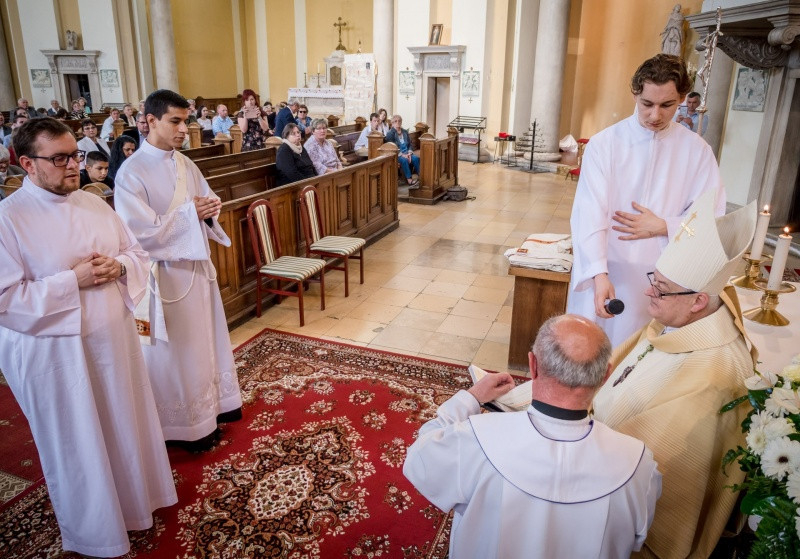A szentmise részét képező diakónus- és papszentelés szertartása a jelöltek bemutatásával és kiválasztásával kezdődött. Hajdú Ferenc helynök a hagyományoknak megfelelően kérte a megyéspüspöktől a pappá és diakónussá szentelést, a főpásztor pedig méltónak találta a kiválasztottakat az áldozópapság, illetve a szerpapság rendjére.