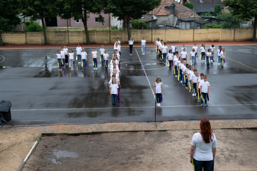 Az ünnepség zárásaként az iskola tornapályáján mutattak be gyakorlatokat a diákok.