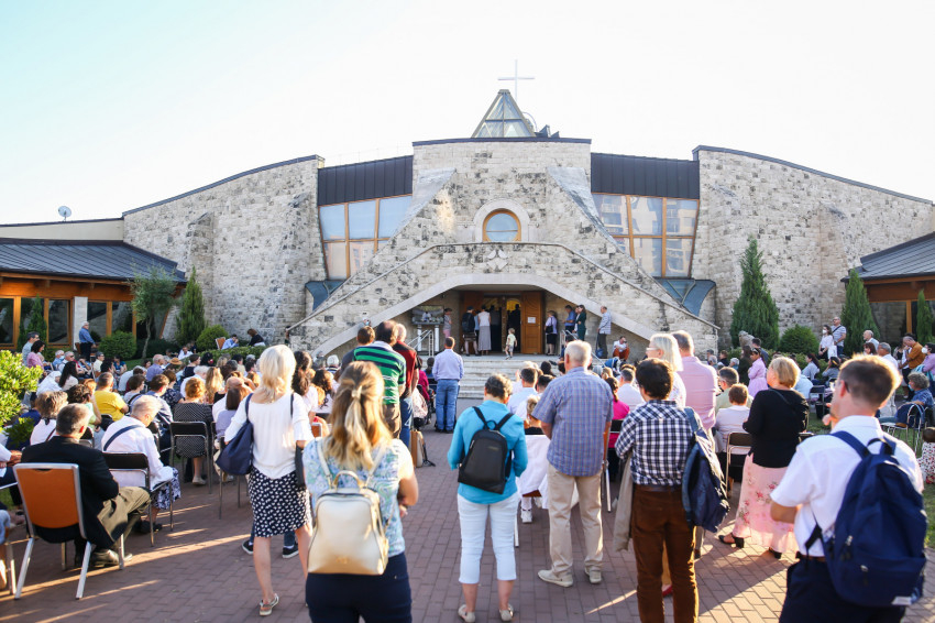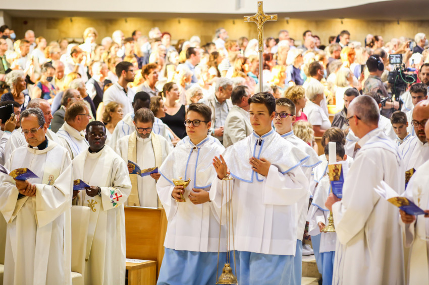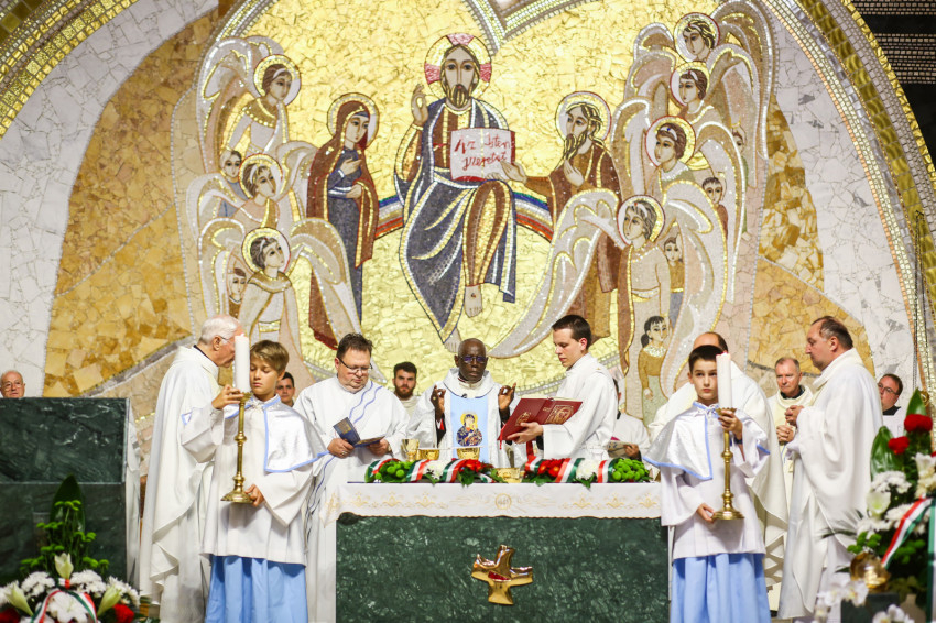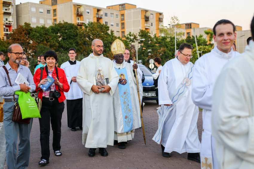 Nemcsak a templom, hanem a templom előtti tér is megtelt Kisboldogasszony napján a szentmisére érkező hívekkel. Robert Sarah bíborossal koncelebrált Piero Marini érsek, a Nemzetközi Eucharisztikus Kongresszusok Pápai Bizottságának elnöke, a világeseményre érkezett püspökök, papok, szerzetesek. A szentmise elején Szederkényi Károly plébános köszöntötte Sarah bíborost, majd a híveket, és elmondta, mekkora örömmel készülődtek erre a testvéri együttlétre.