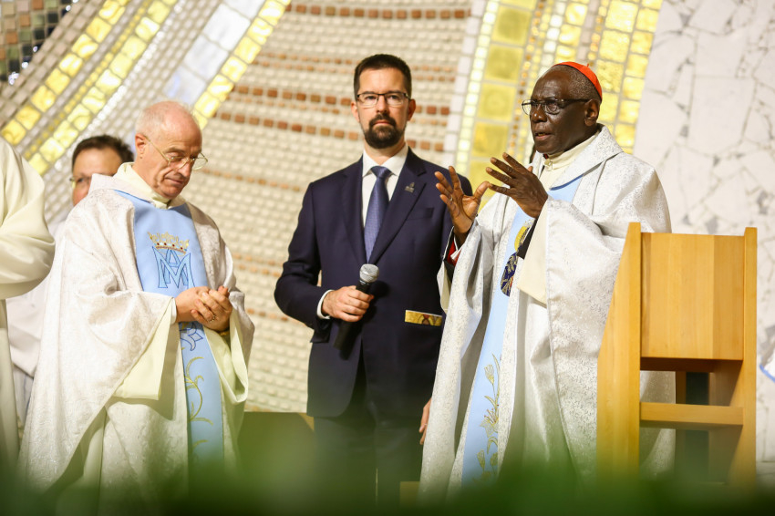 Robert Sarah az áldás előtt elmondta, a szentmisét azért ajánlotta fel, hogy Magyarországot a Szűzanya oltalmába ajánlja, mert az országnak szüksége van Mária anyai oltalmára. „Az Úr megígérte, hogy velünk lesz egészen a világ végéig. Nem kell félnünk semmitől. Kérjük a hit erejét!” – buzdított.