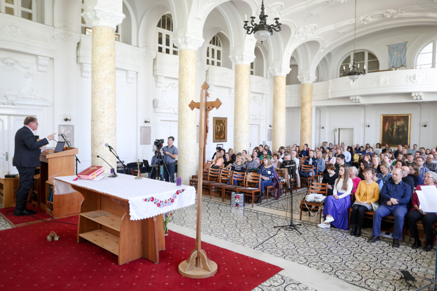 A pálferis imacsoportból alakult spontán zenekar vezetésével dicsőítő énekléssel kezdődött a program; ezt követően hangzott el Fabiny Tamás tanítása, amelyet szeretetvendégség után kiscsoportos beszélgetések követtek.