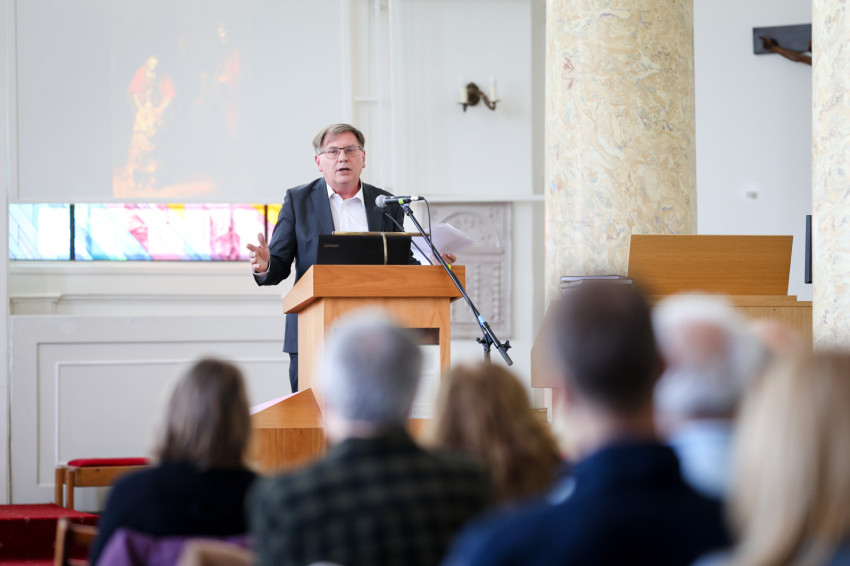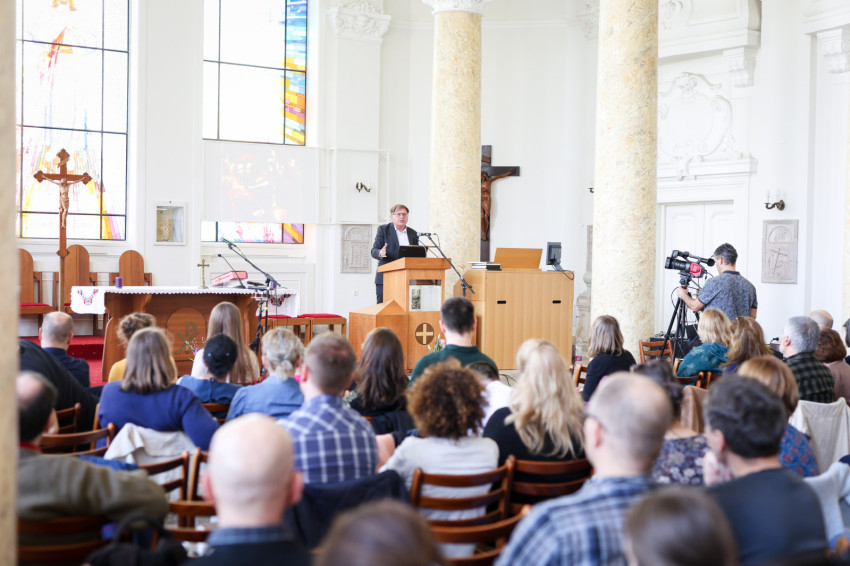 Fabiny Tamás biblikus teológusként Júdásról írt habilitációt, mielőtt az a „baleset érte”, hogy püspökké választották. „Elveszett és megtaláltatott” – Párhuzamosságok a tékozló fiú és Júdás Iskariótes sorsában című, képekkel bőven illusztrált előadásában a tavaly megjelent Júdás, az elveszett tanítvány című könyvének egy sajátos, nagyböjti vetületét tárta a résztvevők elé. A téma másik fele a parabolák iránti szeretetéből származik, doktori disszertációját is ezekből írta.