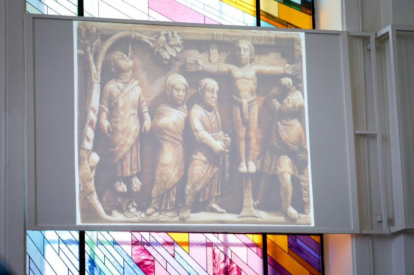 Az evangélikus püspök nemrégiben Burgundiában látott egy különleges Júdás-ábrázolást, ami nagyon kifejező a számára: a dombormű bal oldalán Júdás lóg a fára felakasztva, jobb oldalon pedig Jézus a keresztfán. Mindkettő a nyomorúság fája, és mind a ketten átokká lettek, de az a különbség, hogy Jézus értünk lett átokká. Ezt az is érzékelteti, hogy János, a szeretett tanítvány és Mária a kereszt felé fordulnak, és hátat fordítanak Júdásnak. Fabiny Tamás azonban arra kérte hallgatóit, ezzel az ábrázolással szemben