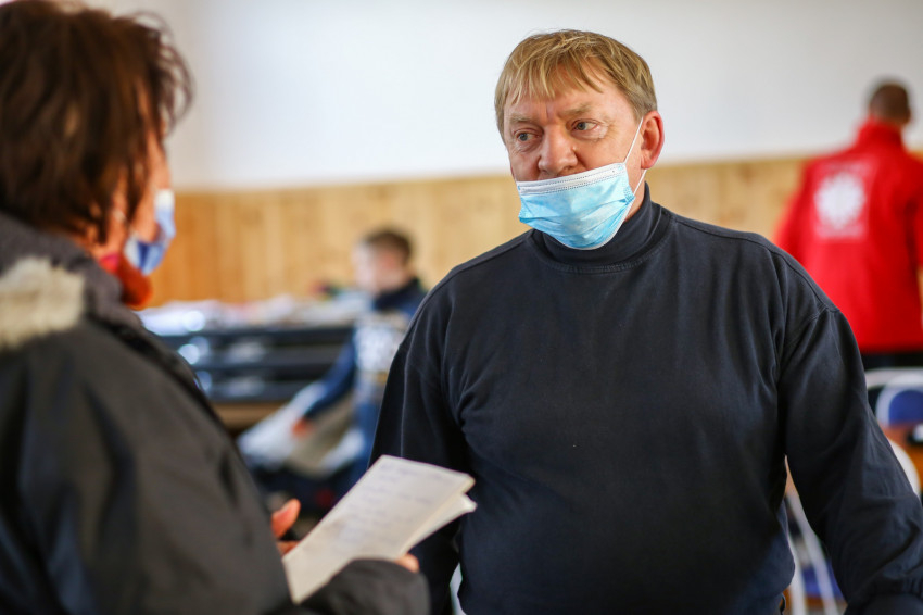 Tarjányi Imréné és asszonytársa reggel érkezett, adományt hoztak Recskről. A sofőrjük szállítást vállalt Budapestre, addig a két asszony kiveszi a részét a munkából. „Testvértelepülésünk van, Rafajnaújfalu. Interneten tartjuk a kapcsolatot, összeszedjük, amire a kintieknek szükségük van. Ezt a világot éljük, nem tudunk mit tenni, de segítünk. Ha kell, bármikor jövünk” – az idős asszony fáradhatatlan a segítségben.
