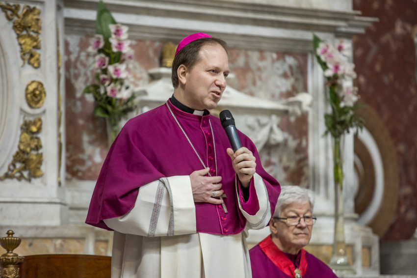 Mohos Gábor homíliájában Szent Adalbertről beszélt, aki sok nehézséggel találta szembe magát, hiszen olyan korban élt, amikor az evangélium tanítását sokan nem akarták elfogadni. „Egy olyan ember volt, akit megérintett az Isten kegyelme. Olyan iskolába járt, ahol elmélyítették benne a hitet, és felkészítették arra, hogy az evangéliumot nem csak megélni kell, hanem tanítani és továbbadni is – mondta Mohos Gábor és felidézte: Adalbert elég fiatalon lett püspök, de engedélyt kért, hogy elhagyhassa Prágát, azt a várost, ahova újból és újból visszatért, ám egy nap menekülnie kellett, hiszen a családját megölték. A segédpüspök szerint Adalbert életútja látszólag nem tudott kibontakozni, megvalósulni. Ez nemcsak 1000 évvel ezelőtt volt így, hanem most is, hiszen napjainkban is vannak ilyen életutak. A szentek példája arra tanít bennünket, hogy mindenkinek van egy személyes, egyedi életútja, és ezek nem véletlenszerűek, hanem Isten tervének részei.
