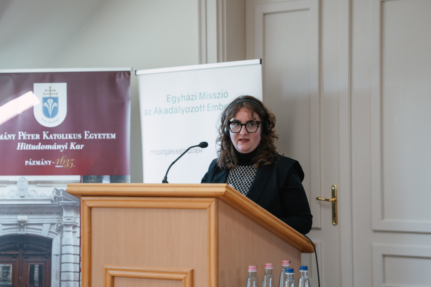 Berzsenyi Emese egyetemi adjunktus (Budapesti Műszaki és Gazdaságtudományi Egyetem Gazdaság- és Társadalomtudományi Kar) Sem ez nem vétkezett, sem a szülei című előadásában az ábrahámi vallások szent szövegeiben vizsgálta a fogyatékosság megjelenését. Rámutatott: a Biblia és a Korán világában a fogyatékosság nem pusztán orvosi vagy erkölcsi kérdés volt, hanem az ember Istenhez való viszonyának tükre. A keresztény szemlélet kulcsa, hogy a fogyatékosság soha nem büntetés, hanem az emberi lét egyik formája, amelyben ugyanúgy megnyilvánul az isteni szeretet. Mint mondta, „a sajnálat ott válik értékké, ahol azonnali cselekvésre késztet” – vagyis