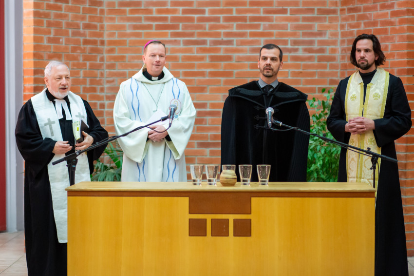 Fábry Kornél esztergom-budapesti segédpüspök; Hafenscher Károly, a Magyarországi Evangélikus Egyház zsinatának elnöke; Hajdú Bálint Kadosa református lelkész, a Misszió Támogató Szolgálat vezetője és Kocsis Tamás görögkatolikus szervezőlelkész, egyetemi lelkész (Dél-Budai Görögkatolikus Szervezőlelkészség) vezették az imát.