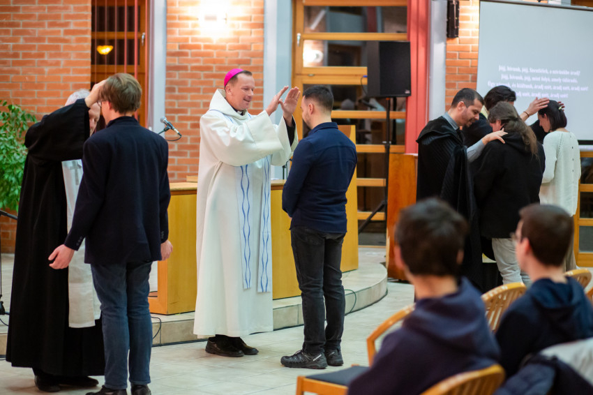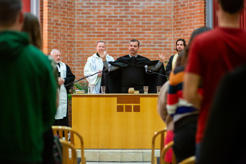 A Szentlelket hívó éneket a Sófár Református Dicsőítő Iskola egyik zenekara szólaltatta meg. A terem megtelt, a fiatalok fokozatosan hangolódtak rá a liturgiára.