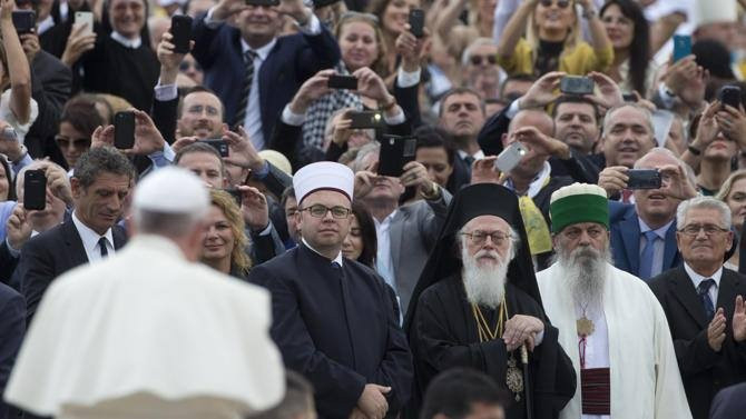 Ferenc pápa itt utalt arra, hogy napjainkban szerte a világon türelmetlenség jelentkezik a különböző vallásokban mások vallási meggyőződéseivel szemben. „Az igazi vallás a béke, nem pedig az erőszak forrása! Isten nevében ölni nagy szentségtörés! Isten nevében hátrányosan megkülönböztetni embertelen tett!” – hangsúlyozta Ferenc pápa Tiranában a vallási vezetőknek.