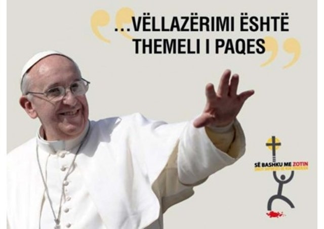 A vallásszabadságot nemcsak a törvényhozásnak kell garantálnia, hanem közös alapja és élettere mindenki együttműködésének, a közjó érdekében végzett erőfeszítéseknek. Minden vallási hagyománynak, vallási, nemzetiségi és kulturális csoportnak önzetlenül hozzá kell járulnia mások és az emberiség szolgálatához. Ha körülnézünk magunk körül, látjuk, mennyi a szükséget szenvedő szegény, milyen sok társadalmunkban azok száma, akik utat keresnek igazságosabb közélet felé, milyen sokaknak meg kell találniuk az élet értelmét és a reménységet. Ezen a területen a különböző vallású nőkre és férfiakra helyettesíthetetlen feladat vár. Ez a terület termékeny lehet a vallásközi párbeszéd számára is” – fejezte be beszédét Ferenc pápa a tiranai vallásközi találkozón, Isten áldását kérve az albániai vallási közösségekre.
