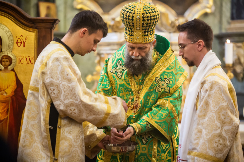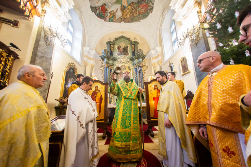 A Szent Liturgiára megtelt a Fő utcai Szent Flórián-templom. Kocsis Fülöp érsek-metropolita kérdéssel indította szentbeszédét: Hogyan szeret bennünket Isten? Választ adva a szeretetnyelveket kapcsolta össze a kereszténység nagy ünnepeivel.