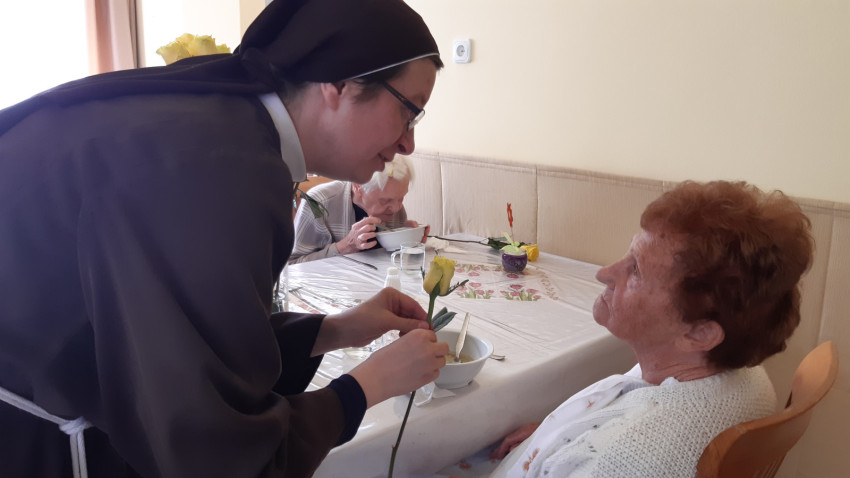 Egy nővértársam szolgálata, hogy a hitéletük gyakorlására imaórákra és szentmisére hívja meg őket az udvaron lévő kolostortemplomba vagy az otthon kápolnájába. Ez a lehetőség mindenkinek fel van kínálva, miután a Dorothea Otthon lakójává válik. Vannak lakóink, akik itt is folytatják a hitéletük gyakorlását, és vannak, akik itt találnak vissza a hitükhöz. Mindenkinek más az útja, de a cél ugyanaz: felkészülni az átmenetre ebből az életből az örök életre.