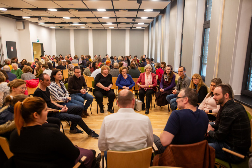 A szalézi közösségi házban kora délután a pálferis imacsoport vezetésével dicsőítő énekléssel kezdődött a program; ezt követően hangzott el Bellovics Gábor tanítása, amelyet szeretetvendégség után kiscsoportos beszélgetések követtek.