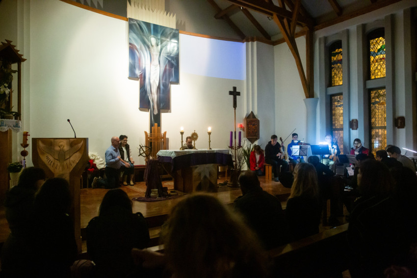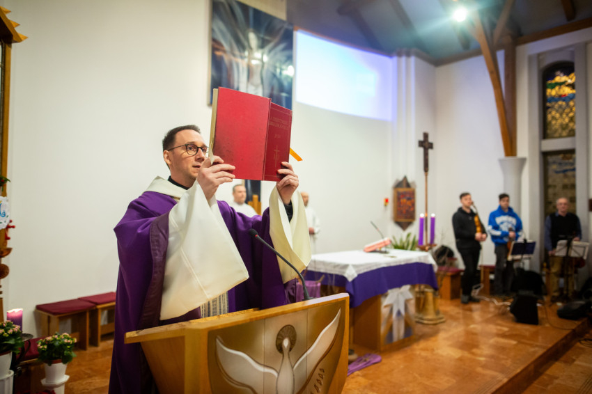 Ezután került sor, immár a Segítő Szűz Mária-kápolnában, a szentmisére, amelyet szintén a jezsuita lelkipásztor mutatott be.