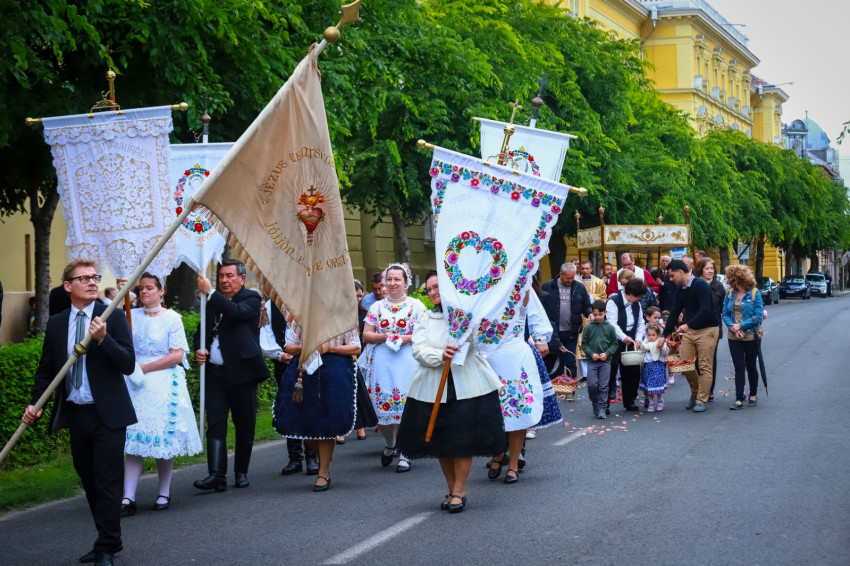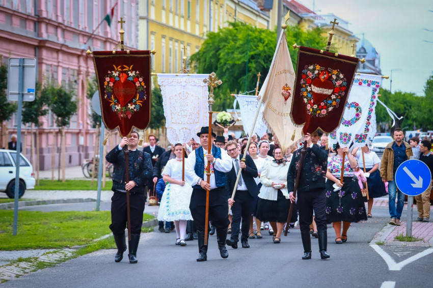 „Jézus Szíve, amelynek teljességéből mindannyian merítettünk.” Ez a mondat a Szent Szív gazdagságát hivatott kijelölni – mutatott rá a főpásztor szentbeszédében. Ez a gazdagság a szavak jelentésében is megnyilvánul. A szív ősidőktől fogva a szeretetnek, a szerelemnek a jelképe, még a modern, infokommunikációs világban is. A teológiának kulcsfontosságú szava, mely nagyszerűen tudja ötvözni a népi jámborságot a mély teológiával. Különösen igaz ez Kalocsa városára, ahol a népviseletek, az ünnepi felvonulás, a körmenet is kifejezi ezt. A teológia pedig felteszi a kérdést: Miért lett a második isteni személy emberré? Miért vállalta a kereszten átszúrt szívéig emberi sorsunkat? Ez Isten szeretetének leginkább megmutatkozó valósága.