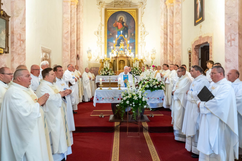A szentmisén Pápai Lajos nyugalmazott győri megyéspüspök homíliájában Jézus Szentséges Szívének ünnepéhez kapcsolódva a papi hivatás misztériumáról, a hivatás iránti hálaadásról és a papi élet tanúságtévő erejéről elmélkedett.