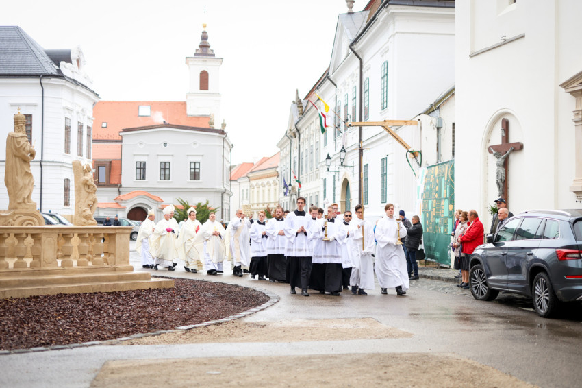 A főszékesegyházban felhangzott a 2022-ben díjnyertes Gizella-fanfár, majd a megújult harangok zúgására elindult az asszisztencia az érseki palotából.