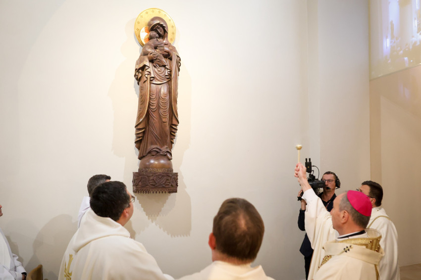 Az altemplomból az oldalhajóba visszatérve megáldotta a fából faragott Istenanya-szobrot és az egykori Nagyszeminárium kertjében elhelyezett Trónon ülő Istenanya-szobrot.