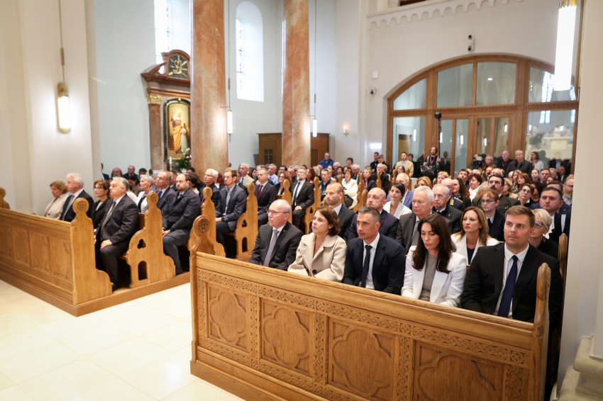 Ovádi Péter országgyűlési képviselő hangsúlyozta, Veszprém már ezer évvel ezelőtt is a bátor döntések városa volt. Gizella királyné kultúrát hozott ide, István király serege a közelben legyőzte Koppány haderejét, a török hódoltság után Padányi Biró Márton püspök barokk pompába öltöztette a várost. A bátor tettek napjainkban is folytatódnak. „Érsek úr felismerte, milyen lehetőség rejlik Veszprémben, és bátran belevágott a történelmi léptékű fejlesztésbe. Tesszük a dolgunkat bátorsággal, hittel, munkával, tovább építjük Veszprémet.”