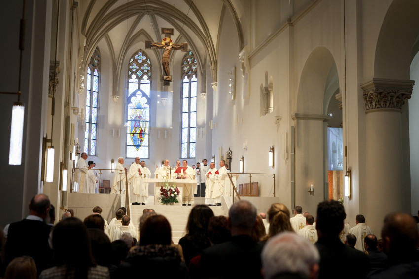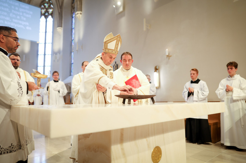 A szentélybe visszatérve a püspök meghintette szenteltvízzel az oltárt is. „Isten, a mi irgalmas Atyánk töltse be jelenlétével az imádságnak ezt a házát. Szentlelke lakozzék templomában, amely mi magunk vagyunk.”