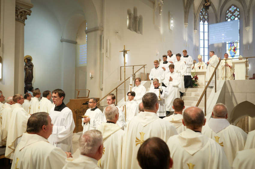 Az ünnepi szentmisén Székely János, a Magyar Katolikus Püspöki Konferencia elnöke, szombathelyi megyéspüspök; Spányi Antal székesfehérvári megyéspüspök, Felföldi László pécsi megyéspüspök, Schönberger Jenő szatmári megyéspüspök, a szerzetesrendek elöljárói, valamint a Veszprémi Főegyházmegye papsága koncelebrált.
