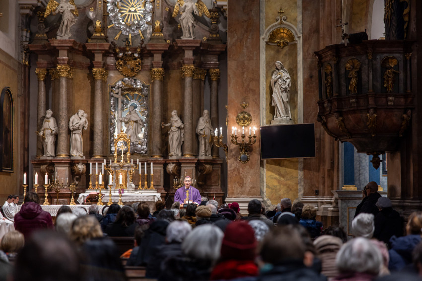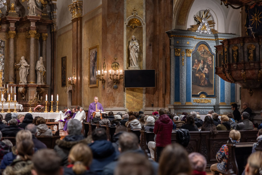 Adventus Domini, azaz Úrjövet – az egyházi évnek ez az első négy hete Krisztus, az Úr eljövetelére figyelmeztet, illetve vigasztal bennünket. Ő az, aki eljön ítélni élőket és holtakat. És egyben Ő az, aki „a megtört nádszálat nem töri össze, és a pislákoló mécsbelet nem oltja ki” (Iz 42,3) – kezdte beszédét a szónok.