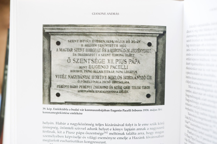 – Tudomásom szerint a modern korban egyvalakinek sikerült magánlátogatáson megnéznie a Szent Koronát, méghozzá Eugenio Pacelli bíborosnak, aki 1938 májusában pápai legátusként érkezett Budapestre, a 34. Nemzetközi Eucharisztikus Kongresszusra. Úgy tűnik, előtte tanulmányozta a magyar korona történetét. A látogatás során Zichy István, a Nemzeti Múzeum akkori főigazgatója beszél neki nemzeti ereklyénkről azután, hogy a bíboros letérdelve imádkozik a Szent Korona előtt. Ehhez természetesen a pecsétek feltörésével ki kellett nyitni a páncélteremből kihozott koronaládát, majd a látogatás után a főméltóságok pecsétjeivel visszazárni. Ezért van jelen az eseményen Imrédy Béla miniszterelnök mellett többek között Horthy Miklós kormányzó kabinetfőnöke, Teleki Pál és Hóman Bálint miniszterek, a két mágnás koronaőr és a Nemzeti Múzeum főigazgatója. Este az MTI, másnap a sajtó beszámol az eseményről, de fénykép nem készül róla.