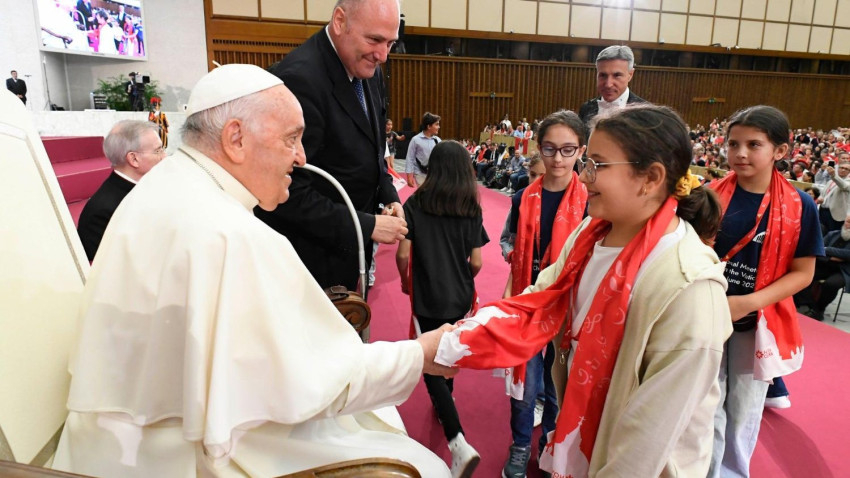Végezetül az egyházi zene szolgálatát az öröm jellemzi – mutatott rá beszédében a pápa. A művészet, a szépség és a lelkiség évszázados kincsének letéteményesei az egyházi kórusok. Ne hagyják, hogy ezt a világi gondolkodás beszennyezze az érdekkel, az ambícióval, a féltékenységgel és a megosztottsággal! Ezek a dolgok ugyanis beférkőzhetnek egy kórus, egy közösség életébe, és az öröm helyét átveszi a szomorúság, felbomlik az egység. Ezt elkerülendő tartsák magasan hivatásuk lelkiségét az imával és az Isten szaváról való elmélkedéssel,
