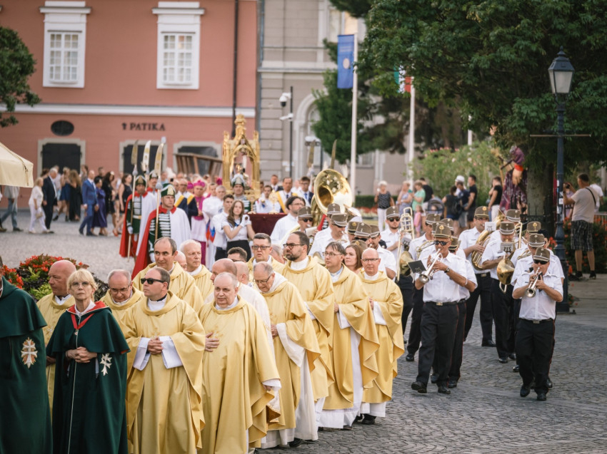 A koszorúzást követően a résztvevők elénekelték a Boldogasszony Anyánk himnuszt, majd visszakísérték a magyar szent család ereklyéit a püspöki palotába.