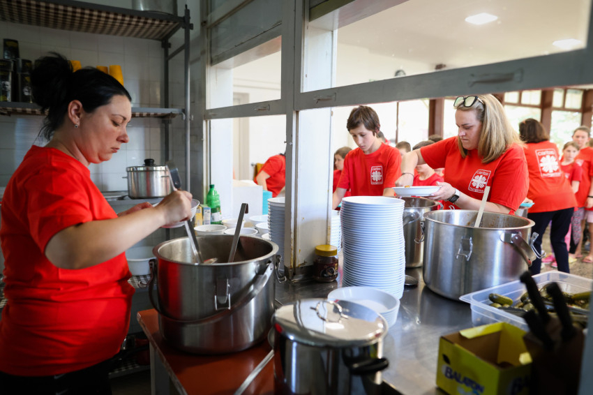 A karitász a közeli Zánkáról, a Szent Erzsébet-tábor konyhájáról veszi az ételt, ami nemcsak finom, hanem a gyerekek igénye szerint van elkészítve. Ebédidőben megérkezik Herczegh Anita, a Katolikus Karitász jószolgálati nagykövete – aki ebéd végeztével a gyerekek közé ment, mindegyiküknek adott egy-egy Balaton szeletet –, Spányi Antal püspök és a környező egyházmegyék karitászigazgatói.