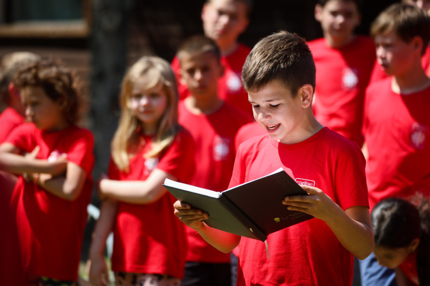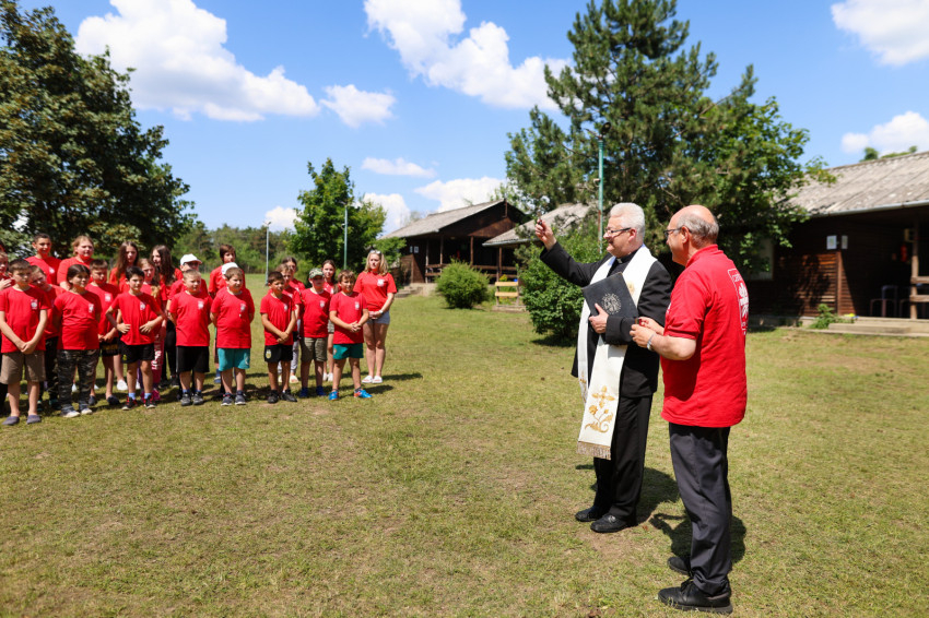 – hangzott el imájában, majd a tábort meghintette szenteltvízzel. A szertartás után ünnepélyesen megnyitotta a balatoni tábort az országszerte működő Vár a nyár! karitásztáborokkal együtt.
